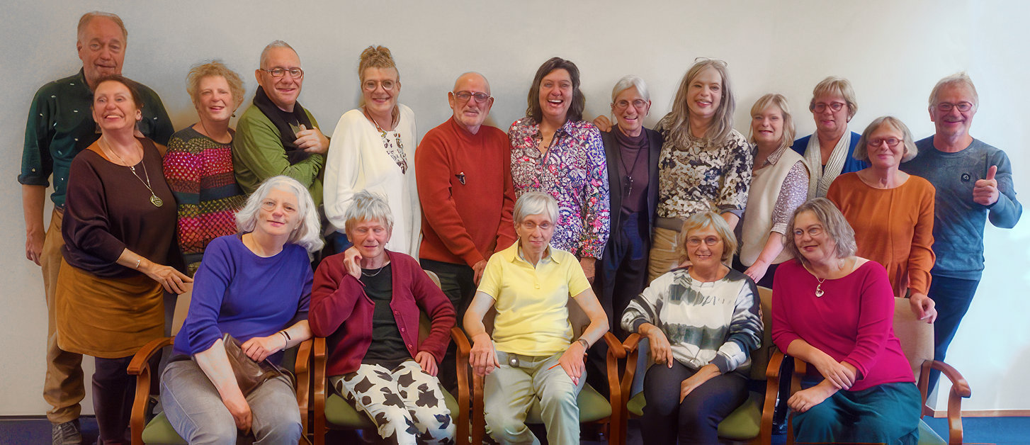 Wij zijn 45-78 jaar en heel enthousiast om dit project op touw te zetten. Binnen onze groep zijn veelzijdige interesses en vaardigheden. We houden van groen en buitenactiviteiten en brengen elkaar gezelligheid. Oog hebben voor de ander, kleine hand- en spandiensten verrichten, een elektrische deelauto vinden we vanzelfsprekend. Er zijn allerlei ideeën over activiteiten. In onze ontmoetingsruimte gaan we gezellige bijeenkomsten organiseren, zoals film kijken, schaakclub, koffie-uurtje, Repair Café, etc. Ook zullen daar o.l.v. onze groepsleden cursussen plaatsvinden zoals 3D-printen, yoga en foto-blauwdrukken leren maken. Sommigen van ons willen samen bijen gaan houden. Verder zijn er altijd klusjes te doen in binnentuin. En natuurlijk genieten we regelmatig samen van een maaltijd.